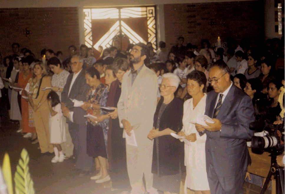 Costruire una chiesa, in un paese divorato dall'inflazione e dall'instabilità politica, non è cosa da poco. La fiducia nella Provvidenza e una rete di benefattori italiani consentono di risolvere i problemi economici e logistici: dal progetto che Cesare schizza a biro una sera del gennaio '97 si arriva all'inaugurazione, il 12 agosto 2001. All'inaugurazione risuonano le parole del lettore: "Questa Messa sarà celebrata in ricordo di Teresa, una nostra amica scomparsa da molti anni". Lo dice in spagnolo: "nuestra amiga Teressa". Dopo trent'anni. Il 12 agosto è come se tutto fosse andato al suo posto. In prima fila ci sono i genitori di Teresa, la mamma ha cucito la tunica nuova per don Dario, che sta sull'altare. Cesare, l'architetto, rigira tra le mani il discorso con cui consegnerà la chiesa al Vescovo, a nome dei parroci e di tutti gli operai che hanno lavorato anche di notte, senza gru. E Teresa? Se la ride, dal cielo. |